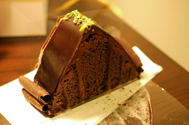 採用濃郁的苦巧克力上面灑上一點點的開心果粒(我完全沒有吃到開心果粒的部分)