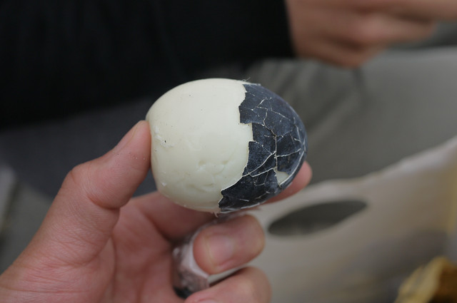 登登登登~黑雞蛋的本人就是長這樣~有一點點白白的殘留~店家還會附上鹽巴!讓你沾著食用