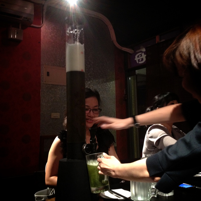 在朋友的推薦下~我們點了一柱招牌的螺旋藻啤酒