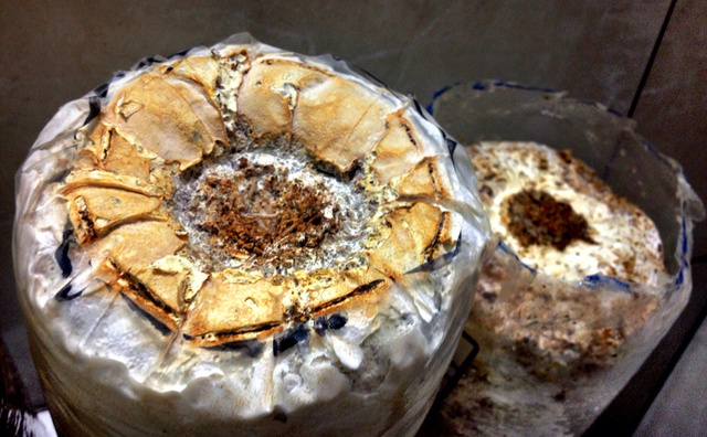 (藍寶石菇應該要等長菇收成一次之後才可以割開~我這下子只能死馬當活馬醫了)